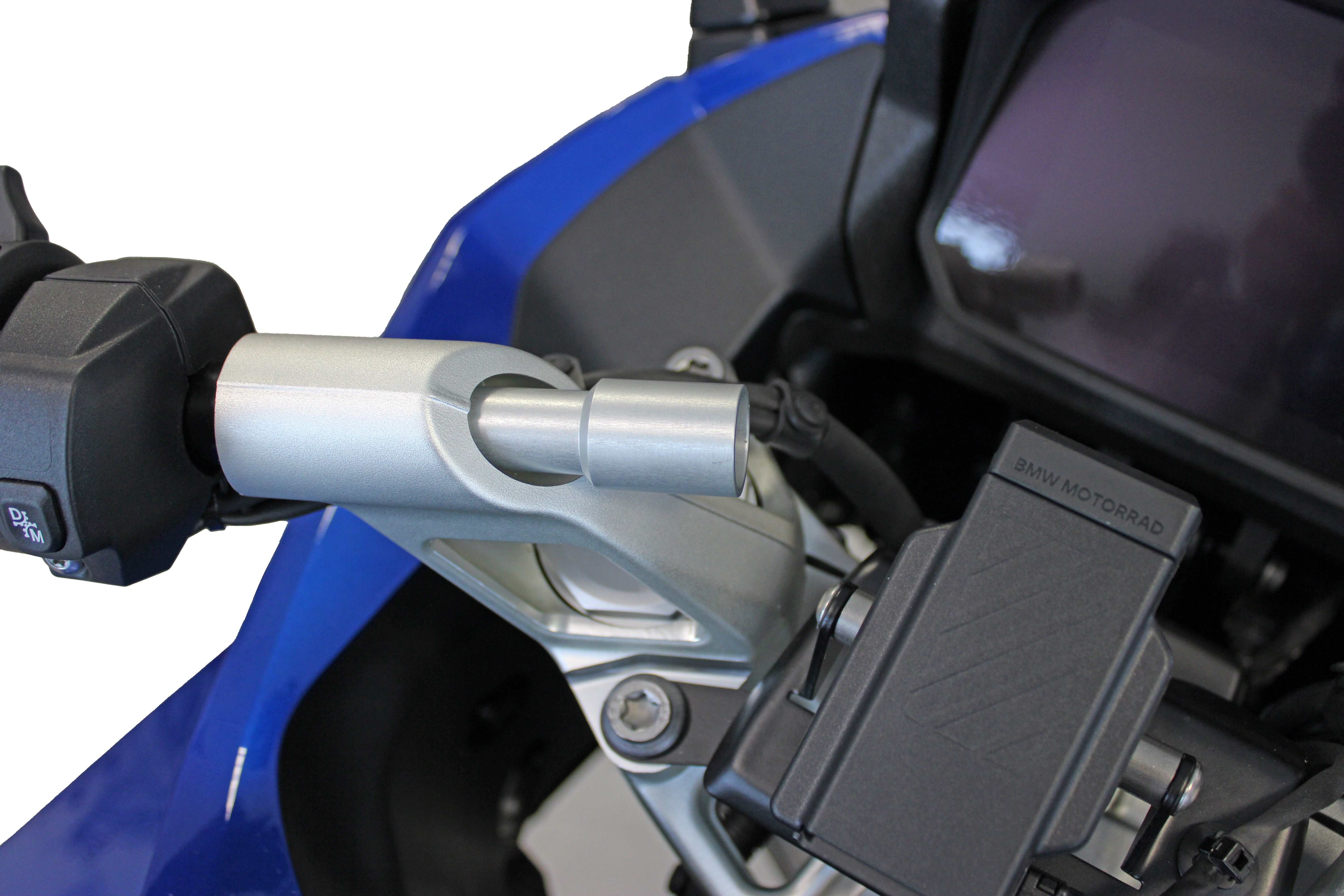 19.03.2026 - para BMW R1300RT & R1300RS Con este adaptador, los artículos que tienen una abrazadera de manillar tubular de 22mm se pueden sujetar de forma segura a la motocicleta. El adaptador se atornilla al manillar desde el interior. El extremo de 22mm de grosor del adaptador sirve como soporte para una abrazadera de manillar. Esto se puede utilizar, por ejemplo, para sujetar de forma segura nuestros distintos soportes para smartphones.
